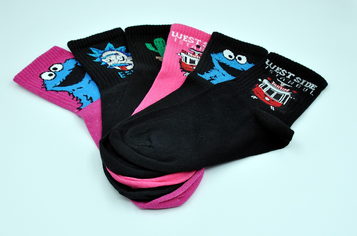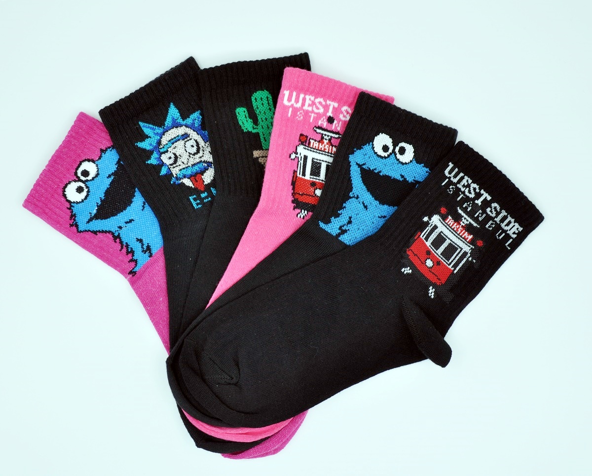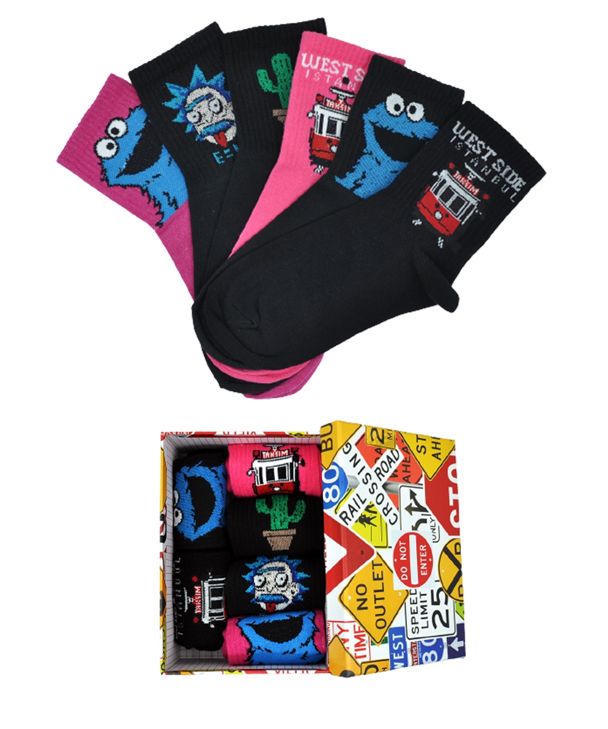 6'lı Taksim İstanbul Einstein Kaktüs Kurabiye Canavarı Karma Renkli Çorap Kutusu